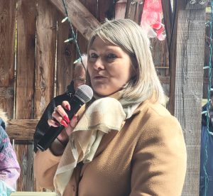 Dominique Samson-Desrochers, conseillère politique et directrice du bureau du député de Richmond, a pris la parole au nom d’André Bachand.  (photo : Sébastien Michon – Le Val-Ouest)