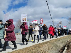 Près de 170 personnes ont bravé le froid pour marcher dans les rues du village de Racine, le 1er avril dernier. Leur objectif : demander au gouvernement provincial et au gouvernement fédéral de décréter une Journée nationale du travail invisible.