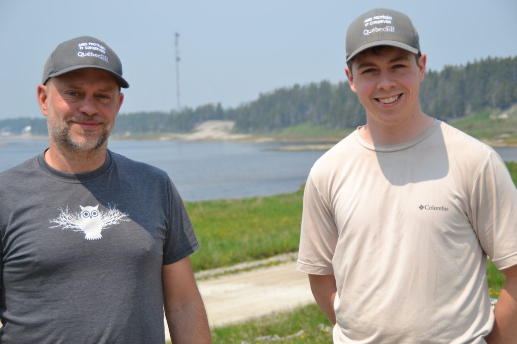Dominic Boisjoly, coordonnateur des aires protégées au MELCCFP et Jérémie Fuller, biologiste responsable de la réserve de biodiversité d’Anticosti.