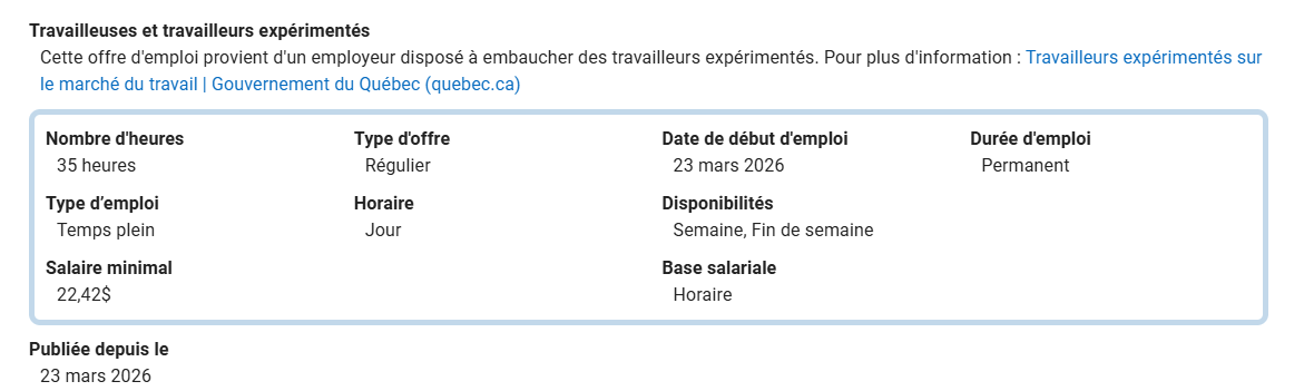 Pourrais possiblement devoir se déplacer le soir et le weekend pour répondre à des appels d’urgence (à valider avec le candidat
