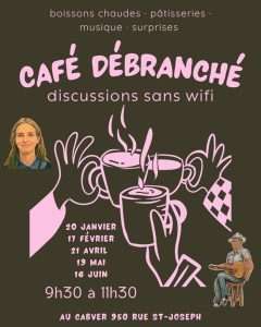 Venez voir et jaser avec du vrai monde, et ce, gratuitement. On lâche internet pis LCN, et on se fait du fun comme dans le temps. Tous les 3e mardi du mois à 9h30. Café, goûter, musique, bâton de paroles et tralala ! Ma nouvelle collègue, Geneviève et moi y serons.
