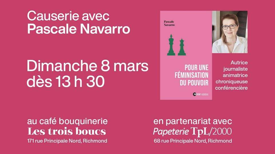 Une causerie avec l’autrice Pascale Navarro autour de son dernier livre « Pour une féminisation du pouvoir » publié chez Leméac en octobre 2025.