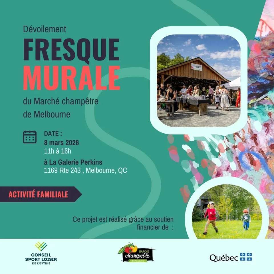 Venez découvrir la murale complétée au Marché Champêtre de Melbourne, réalisée grâce à la collaboration de la communauté et de l’artiste Sabrina Begin Tejeda. Le dévoilement aura lieu à La Galerie Perkins. Des activités pour les enfants seront offertes tout au long de la journée.