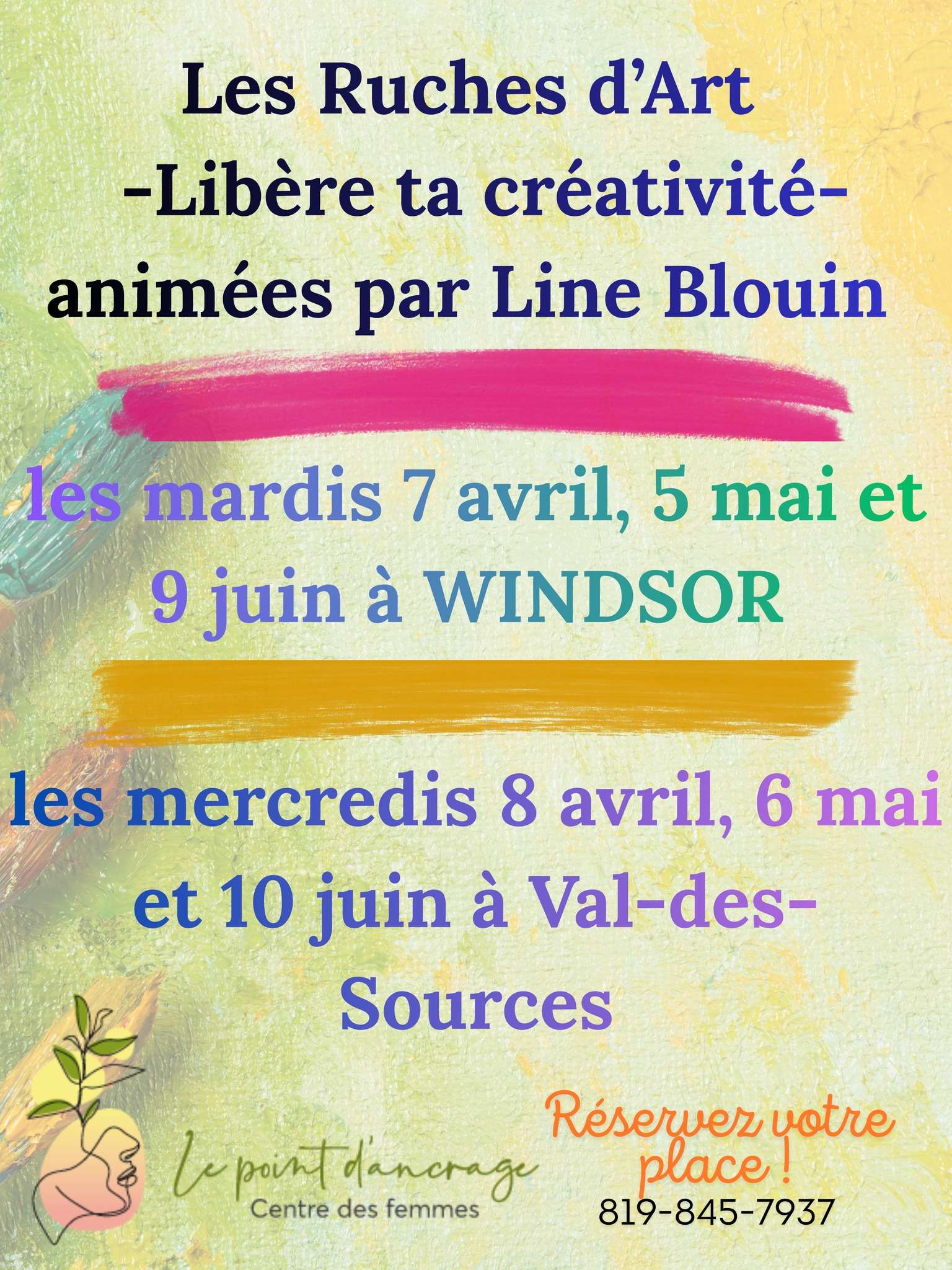 Inscription par téléphone 819-845-7937 ou par courriel info@lepointdancrage.ca pour les membres (seulement 5$ / année pour le devenir!