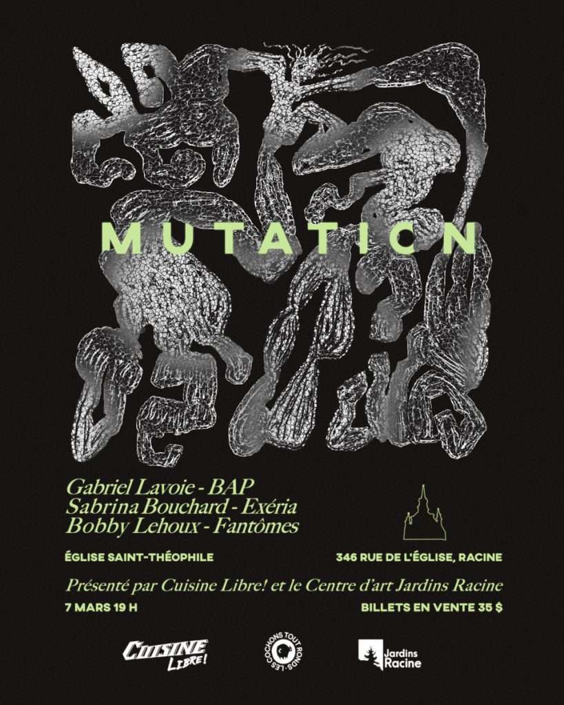 Les billets pour le spectacle « Mutation », disponibles en ligne, sont vendus au coût de 35 $, ce qui inclut le breuvage et les bouchées.