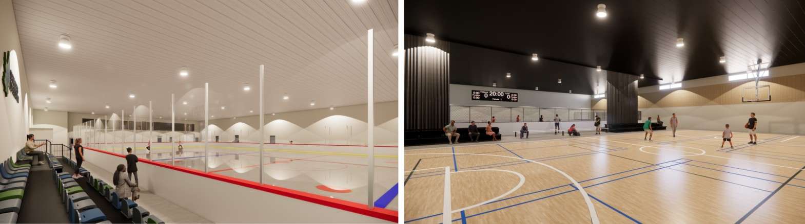 Que choisiront les citoyennes et citoyens? Un aréna ou un centre sportif multifonctionnel?  (crédit : firme JDA architecte et associés avec l’aimable autorisation de la Municipalité de Saint-Denis-de-Brompton)