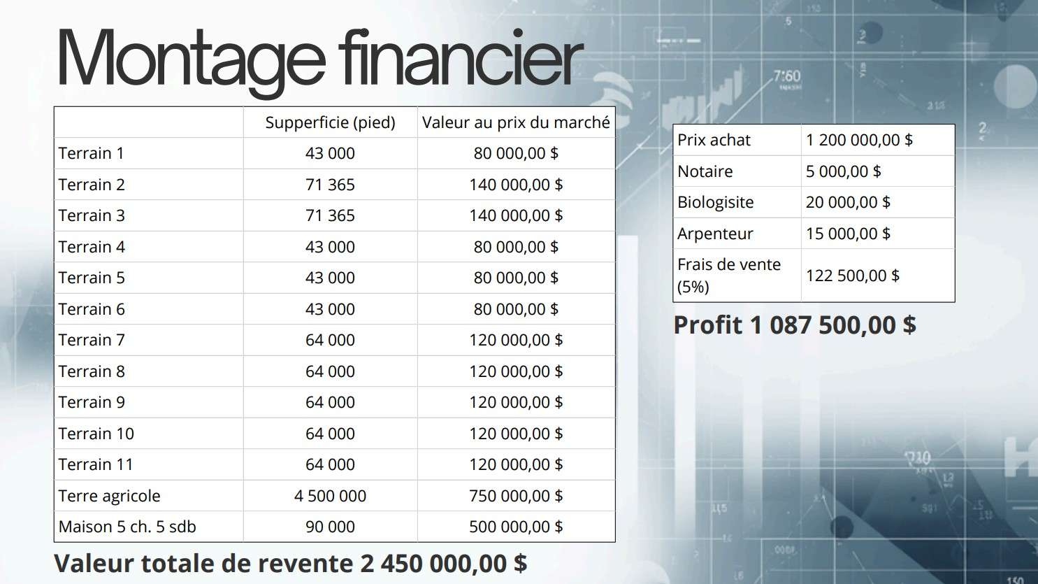 Le projet, rappelons-le, visait à acheter une fermette de 144 acres (582 747 mètres carrés) au coût de 1,2 M$, pour le lotir et vendre des terrains. La municipalité estimait que ce projet aurait pu lui rapporter, à terme, un profit d’un peu plus de 1 M$.