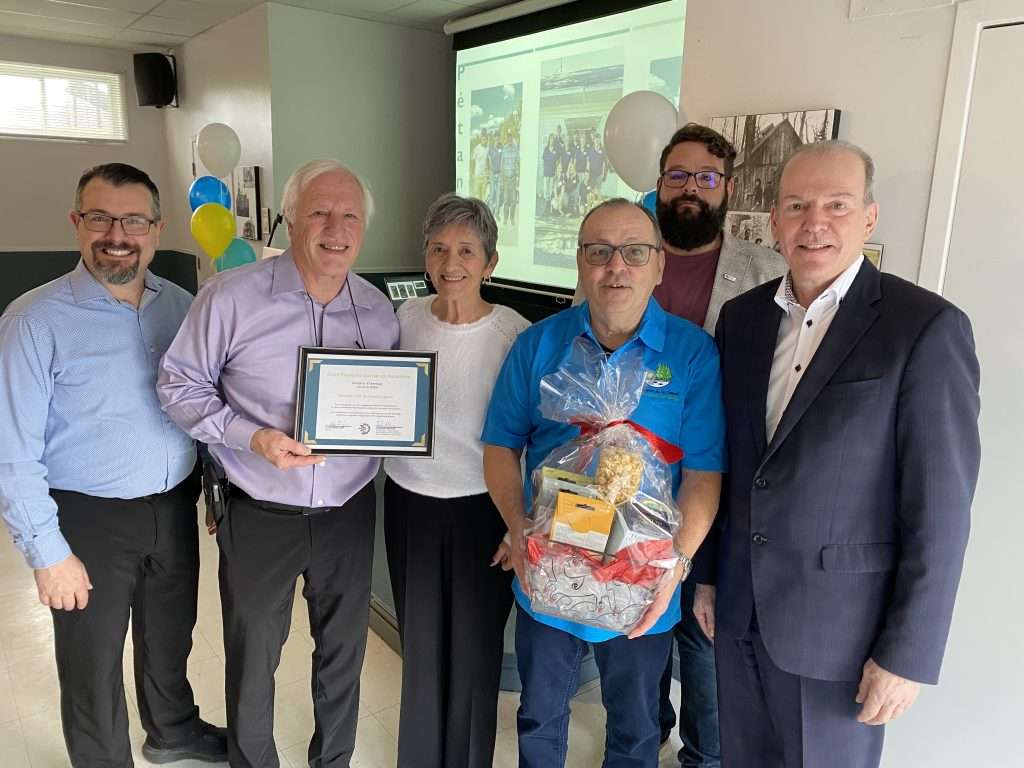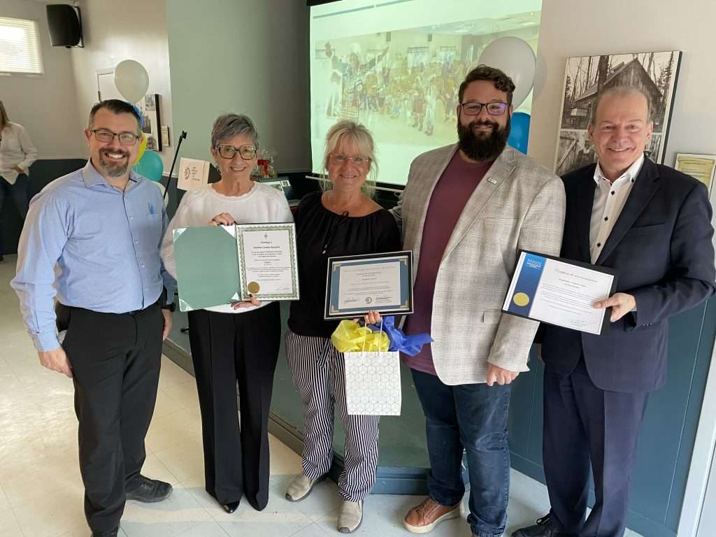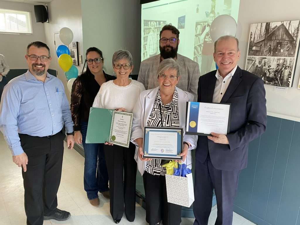 M. Claude Paulin, l’attachée politique du député de Richmond Arthabaska Eric Lefebvre, Mme Sylvie Bureau, le récipiendaire du prix Hommage, M. Bertrand Gagnon, le maire M. Alexandre Roy, le député de Richmond